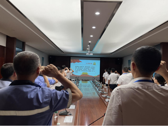會議正式開始,康泰集團黨支部書記張勇同志對此次會議情況做出說明,隨后全體黨員在支部書記的帶領下重溫入黨誓詞,高舉右手,莊嚴宣誓,入黨誓詞雖然只有短短80字,但字字千鈞,是每一名共產黨員入黨初心的真實寫照和莊嚴許下的錚錚誓言。