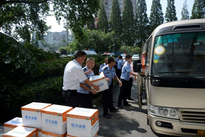 ? ? ? ? “為了方便市民出行,交警365天都堅(jiān)持在一線執(zhí)勤,特別的辛苦。作為本地企業(yè),我們也希望自己的一點(diǎn)小舉動(dòng)能為廣大交警和協(xié)管員同志送去一份清涼和關(guān)懷,以感謝他們的辛勤付出。“8月16日上午,康泰集團(tuán)工會(huì)主席吳彬帶領(lǐng)公司員工專程將礦泉水和防暑藥品等送到了崇州市交警大隊(duì),并轉(zhuǎn)交到交警手中,為他們帶去了絲絲涼意。