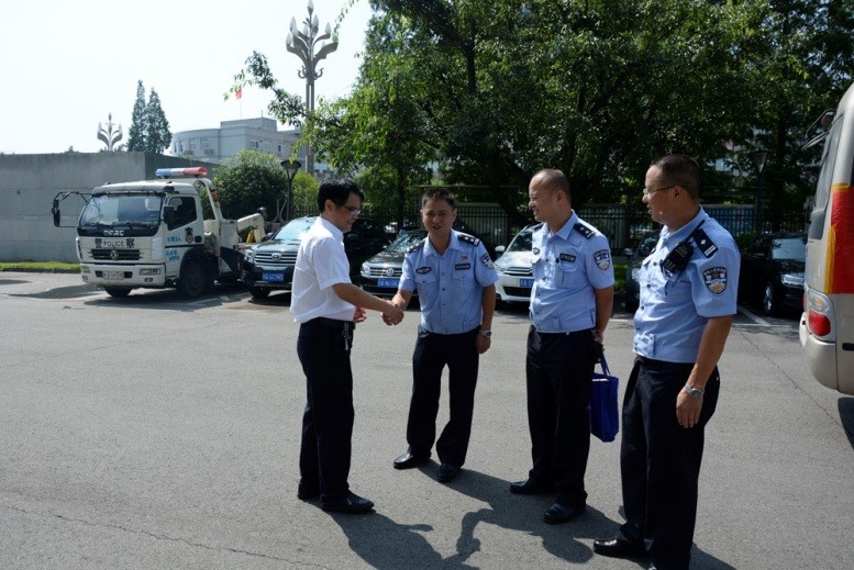 圖為康泰集團(tuán)工會(huì)主席吳彬與交警大隊(duì)領(lǐng)導(dǎo)親切握手
