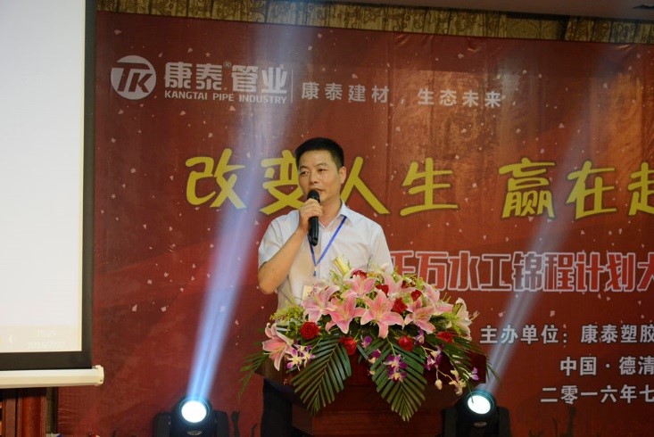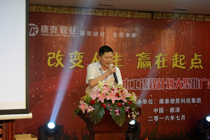 ? ? ? ?會上,浙江基地總經(jīng)理潘明正首先致詞,代表康泰集團對各位嘉賓的到來表示熱烈的歡迎和衷心的感謝,并預(yù)祝會議取得圓滿成功,祝各位水電大師前程似錦,事業(yè)蒸蒸日上。