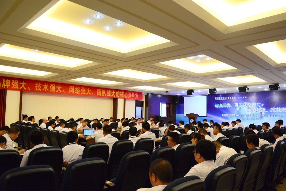 ?????? 7月11日—12日,以“認(rèn)清形勢、鞏固戰(zhàn)略推廣+渠道建設(shè)、挑戰(zhàn)發(fā)展”為主題的康泰集團(tuán)銷售中心2015年半年度工作總結(jié)暨表彰大會在集團(tuán)總部召開。集團(tuán)董事長兼總裁林云青以及公司各中心總監(jiān)出席會議,全國各辦事處、商務(wù)部的銷售精英參加了會議。