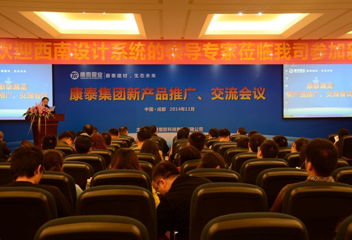 ?????? 11月27日,“康泰集團2014年度新產品成都推廣、交流會”在集團總部圓滿落下帷幕。本次新品推廣、交流會以生態(tài)環(huán)保為主題,以市場需求、國家政策和先進技術為導向,共推出了環(huán)保MPE、MPVE?雙壁波紋管道、PP超靜音排水管道、HDPE同層排水管道、加強型漩流降噪特殊單立管道五種新品,獲得了參會人員的一直好評。會上,大家共同學習了解了康泰集團的最新產品,會議達到了預期效果,取得了圓滿成功。?????? 此次會議是康泰集團繼重慶之后在成都舉辦的西南設計系統(tǒng)的新產品推廣、交流專場盛會。中國市政工程西南設計研究總院總工程師羅萬申等近百位西南設計系統(tǒng)的領導、專家撥冗蒞臨,集團公司董事長兼總裁林云青、營銷中心總監(jiān)何朝暉、技術研發(fā)中心總監(jiān)張雙全、營銷中心副總監(jiān)王金濤,以及相關部門領導和人員參加了本次會議。