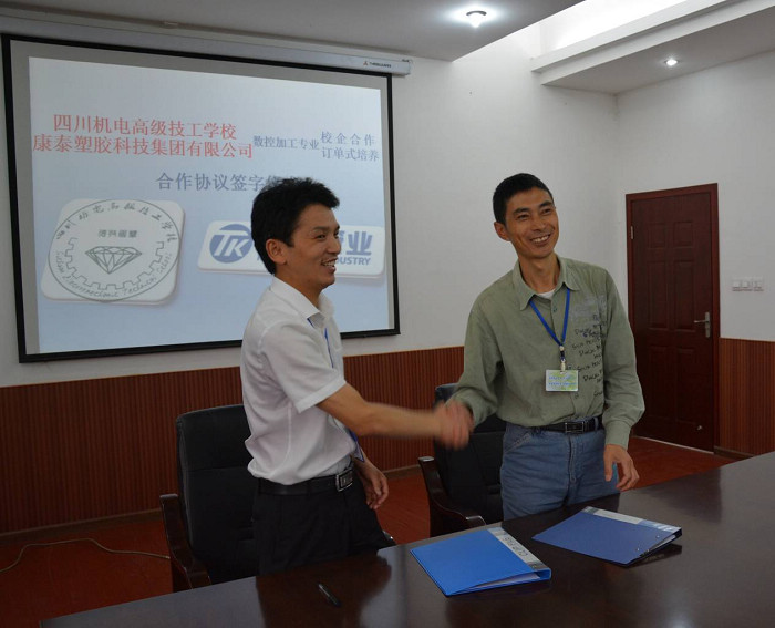?????? 2014年9月3日下午14:30,康泰塑膠科技集團有限公司與四川機電高級技工學(xué)校校企合作、訂單培養(yǎng)協(xié)議簽字儀式在四川機電高級技工學(xué)校第二會議室舉行。