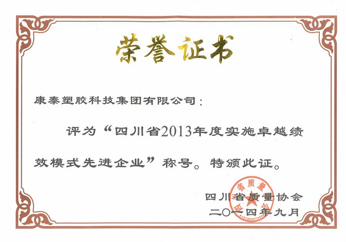 ?????? 卓越績效模式是80年代后期美國創(chuàng)建的一種世界級企業(yè)成功的管理模式,其核心是強(qiáng)化組織的顧客滿意意識和創(chuàng)新活動,追求卓越的經(jīng)營績效,引導(dǎo)企業(yè)持續(xù)改進(jìn),是不斷提升企業(yè)管理水平和綜合競爭能力的有效途徑??堤┘瘓F(tuán)自2009年開始申報(bào)“省實(shí)施卓越績效模式先進(jìn)企業(yè)”以來,連續(xù)六年獲此殊榮,實(shí)現(xiàn)了康泰集團(tuán)質(zhì)量管理目標(biāo)。