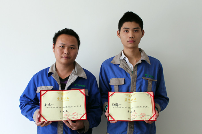 ??? 2013年8月,公司維修電工陳定平、龔繼永,數(shù)控車工馬佑霖、黃虎四位員工代表公司,參加了由成都市總工會(huì)、人社局舉辦的2013成都百萬(wàn)職工技能大賽。在維修電工組的比賽中,陳定平以90.2的高分榮獲維修電工第一名,龔繼永獲得第五名;在數(shù)控車工組比賽中,馬佑霖獲得第五名,黃虎獲得第六名。通過(guò)比賽,陳定平職業(yè)資格可晉升為高級(jí),而其他三位員工則晉升為中級(jí)。