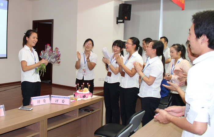 演講比賽結(jié)束后,9月員工生日會隆重舉行。很多9月生日的員工因為工作原因未能達到現(xiàn)場,隨著“祝你生日快樂”熟悉的旋律響起,一段9月生日員工的PPT向大家展示了9月壽星們在工作崗位上的精神風(fēng)貌,而來自采供中心的何瑤代表他們接受了大家的鮮花與祝福。